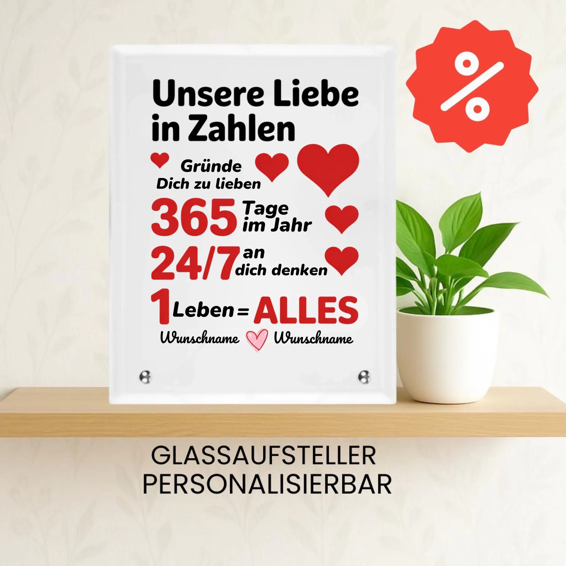 🥀 Blumen welken, aber wahre Liebe bleibt. ❤️ Verewige euren schönsten gemeinsamen Moment mit einem personalisierten Glasaufsteller. ✨ Füge dein Lieblingsfoto 📸, deinen Namen ✍️ und das Datum, das alles verändert hat 🗓️, hinzu und erschaffe ein Geschenk, das die Zeit überdauert. 🎁 Zeige zum Valentinstag, dass deine Liebe für die Ewigkeit bestimmt ist. ♾️